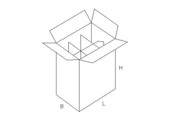 Caja para botellas en la que las divisiones interiores están integradas en la misma caja con lo que en una sola operación tenemos la caja lista para envasar.