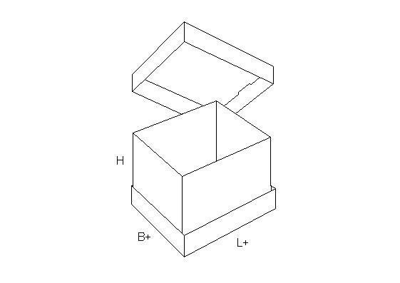 Para el fondo utilizamos una caja B1 sin solapas en la parte superior y para taparla se confecciona una tapa automontable de una sola pieza. Este sistema se utiliza en cajas de medidas grandes principalmente.